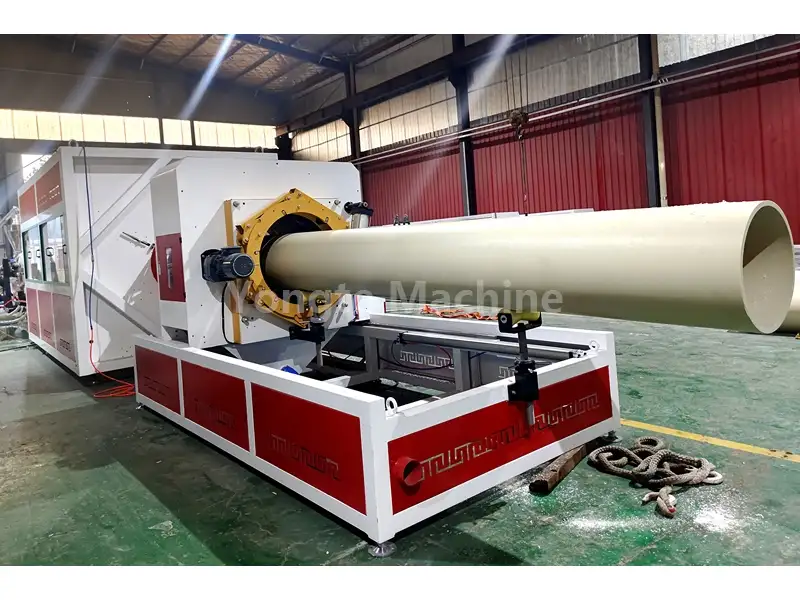 ठूला-व्यास PVC कठोर पाइपहरूको चलिरहेको उत्पादनको लागि डिजाइन गरिएको विशेष ईन्जिनियर गरिएको एक्सट्रुजन उपकरण, 280 देखि 500 मिलिमिटर सम्म, चिल्लो र लगातार एकसमान पर्खालहरू देखाउने।
